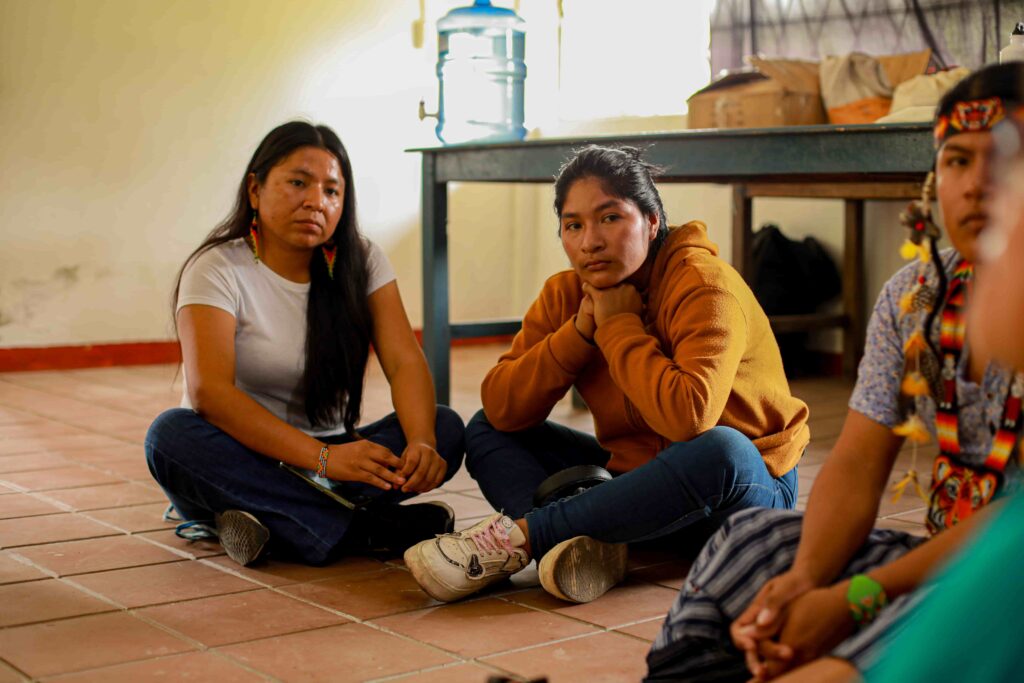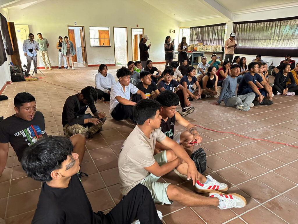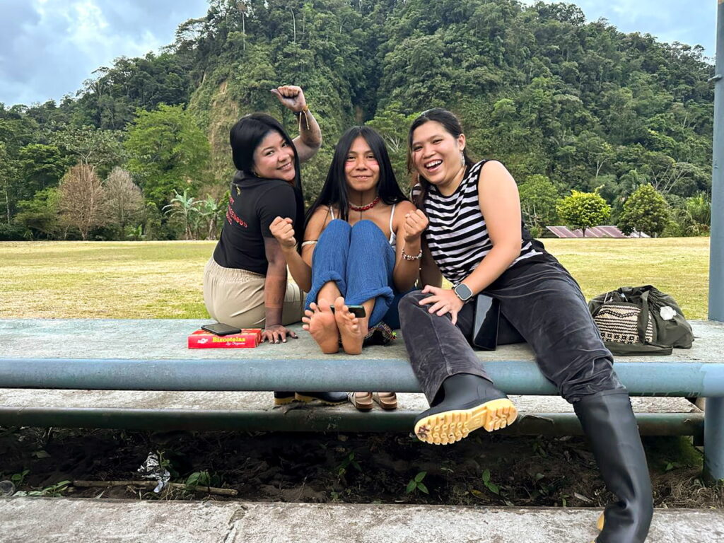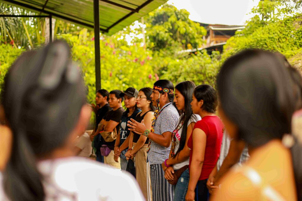 Depois, participamos da Roda de Conversa “Mineração ilegal em Napo, mulheres e resistência”. Este espaço permitiu que os jovens da comunidade levantassem sua voz e expressassem suas reivindicações diante do avanço de atividades extrativistas e dos efeitos nocivos no meio ambiente.