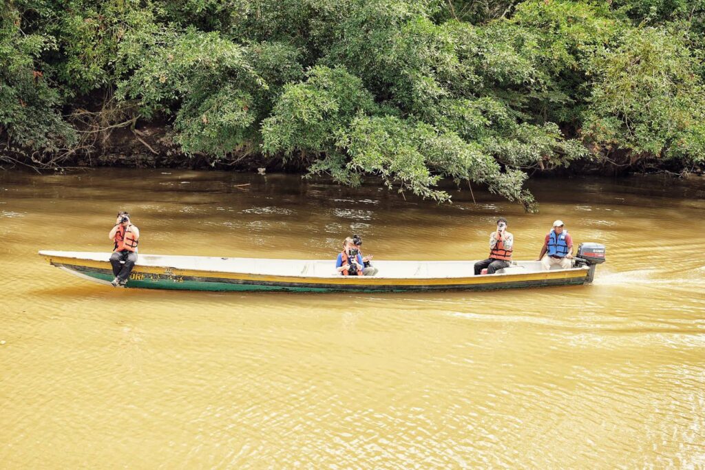 Após 6 horas de viagem de lancha pelo rio Napo, chegamos ao extremo oriental do território equatoriano e descansamos uma noite na cidade de Nuevo Rocafuerte. Na manhã seguinte, realizamos os trâmites de migração e percorremos o Parque Nacional Yasuní. Esta é uma das áreas mais biodiversas do planeta e reconhecida como uma reserva da biosfera pela UNESCO. Também é lar ancestral do povo Waorani, um povo em contato inicial, e dos Tagaeri e Taromenane, estes dois últimos comunidades em isolamento voluntário.